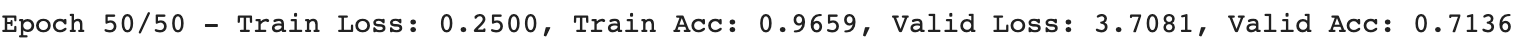 print(f"Epoch {epoch + 1}/{epochs} - Train Loss: {train_loss:.4f}, Train Acc: {train_accuracy:.4f}, Valid Loss: {valid_loss:.4f}, Valid Acc: {valid_accuracy:.4f}")