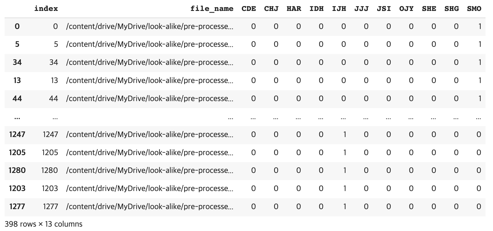 ์ฐ์ ์ ์ฒ๋ฆฌ๋ ์ฌ์ง๋ค์ ์ด๋ฆ(์ด๋ฆ_์๋ฒ ํํ)๊ณผ ํด๋น ์ธ๋ฌผ๋ค์ด label ๋ csv ํ์ผ์ ์์ฑํ๋ค.