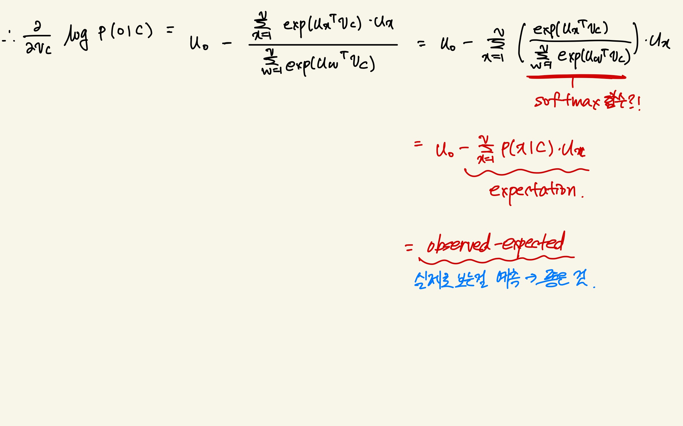 - μ΄ νλ₯ μ μ΅λνμν€κΈ° μν΄ word vectorλ₯Ό κ°±μ μν¨λ€.