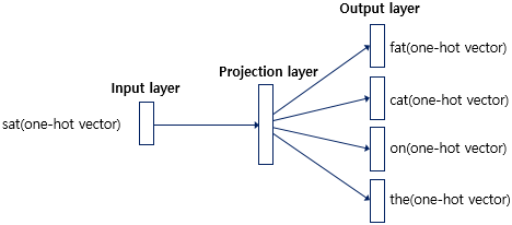 ๋ ฅ, ๋งฅ๋ฝ ๋ฒกํฐ๊ฐ ์ถ๋ ฅ์ธ ๊ฒฝ์ฐ๋ฅผ Skip-gram ๋ฐฉ์์ด๋ผ๊ณ ํ๋ค.