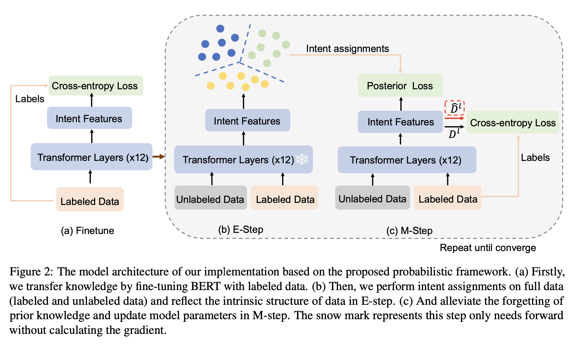 - known intent๋ก๋ถํฐ ์ ๋ฌ๋ ์ง์์ ๋ง๊ฐํ๋ ๊ฒ์ ์ํํ๊ธฐ ์ํด labeled data์ ๊ตฌ๋ณ์ฑ ์ต์ ํ