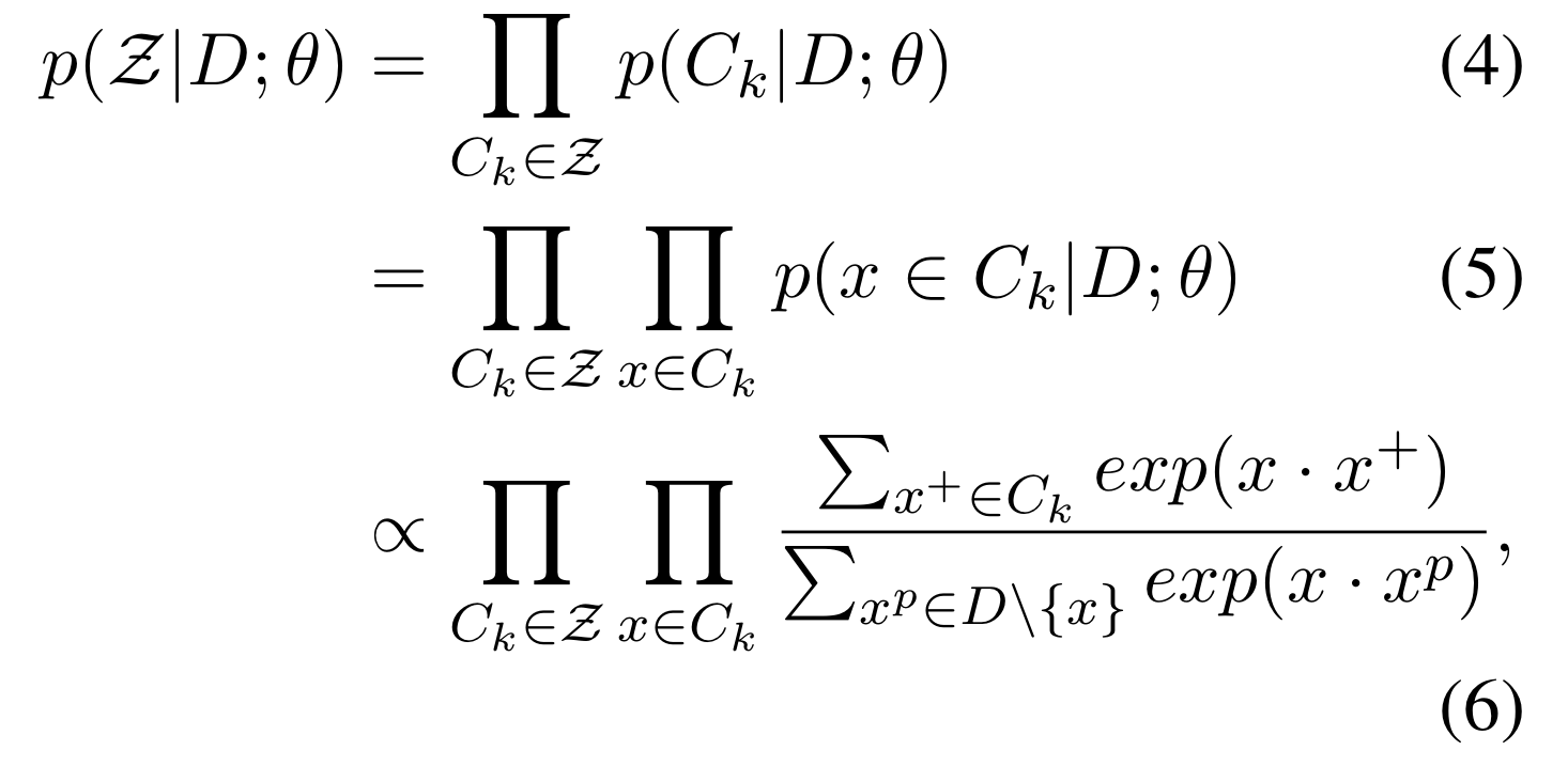 ํด๋น ๊ฐ๋ ์ contrastive learning์ผ๋ก๋ถํฐ ์๊ฐ ๋ฐ์ ์ฌํ ํ๋ฅ ์ธ p(Z|D; θ)๋ฅผ ์ถ์ ํ๋ค. ์์ ๋ค์๊ณผ ๊ฐ๋ค: