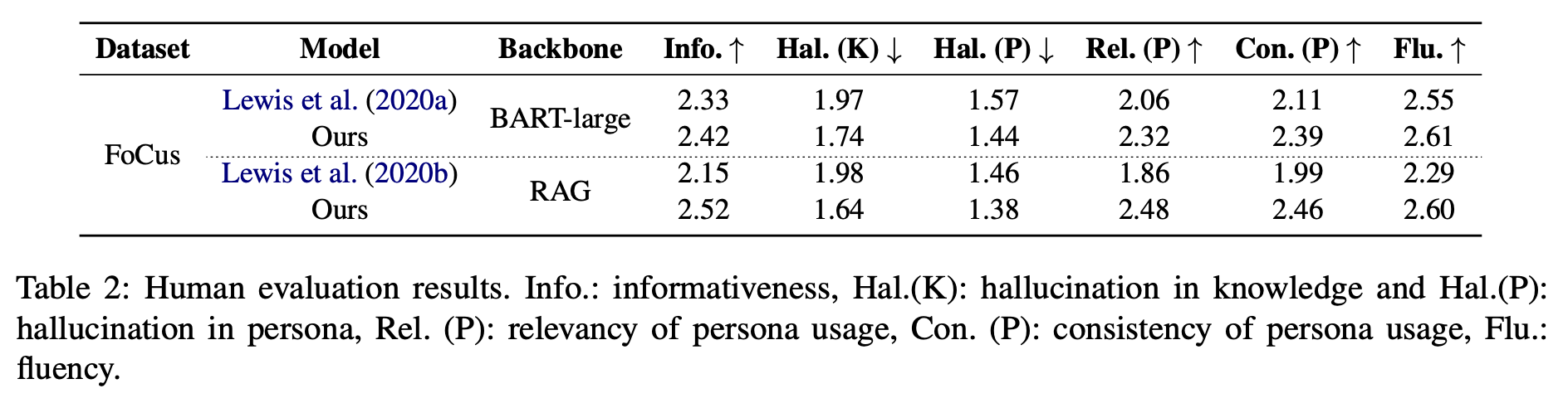 Metric์ผ๋ก๋ FoCus dataset์ ํฌํจ๋๋ ๋ค์ metric ๋ค์ ์ฌ์ฉํ๋ค.