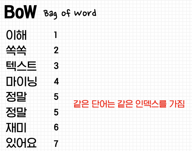 μ΄λ¬ν μμ μ΄ BoWλ₯Ό λ§λ κ²μ΄λ€.